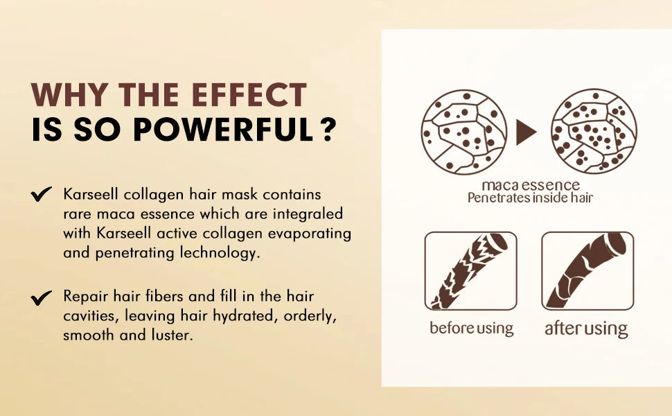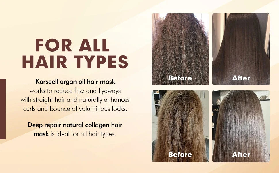 Tratamiento capilar de colágeno Karseell de 500 ml, acondicionador reparador profundo con aceite de argán y queratina, tratamiento para cabello seco, dañado, rizado y decolorado.