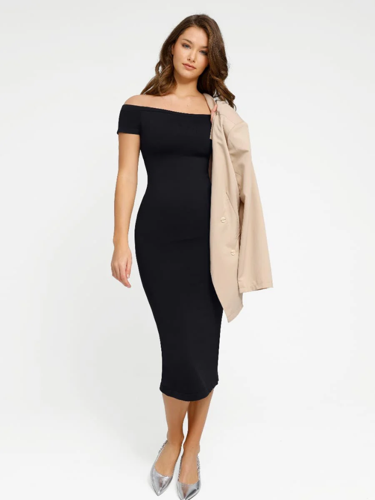 1. Diseño asimétrico que realza la clavícula, los hombros y el cuello; básico, versátil y a la moda para usar en exteriores.